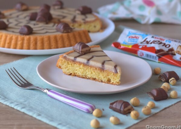 Decorate la crostata con dei pezzetti di Kinder Bueno.
