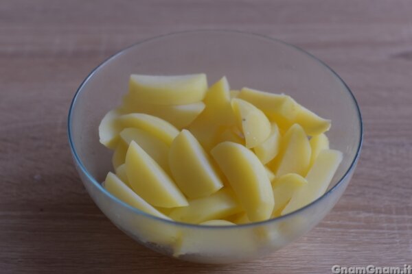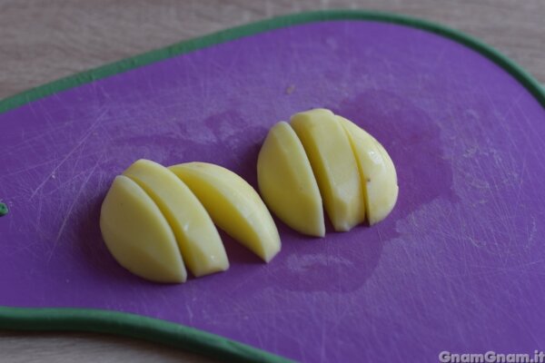 Tuffate le patate in acqua bollente e fate cuocere circa 10 minuti. Dovranno ammorbidirsi leggermente, ma non sfaldarsi!