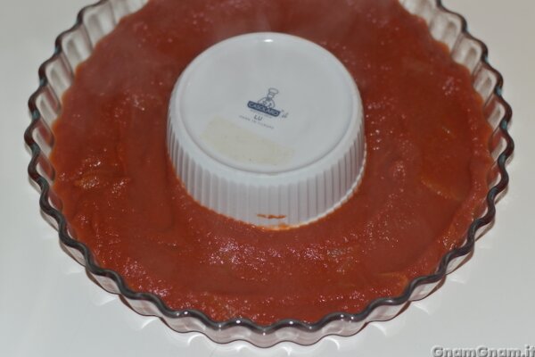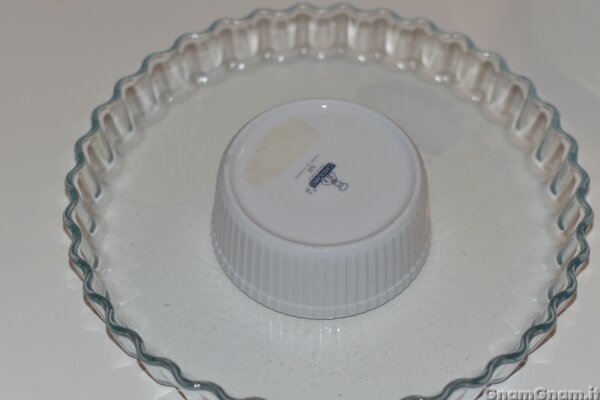 Prendete una pirofila di 28cm di diametro e mettete al centro un contenitore da 10cm.