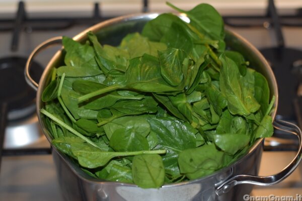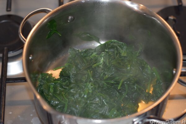 Nel frattempo mettete gli spinaci in una pentola con una tazzina d’acqua