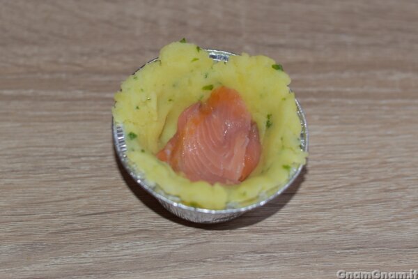 Io ho aggiunto al salmone un po’ di scamorza affumicata, che trovo ci stia benissimo. Se volete potete mettere anche delle zucchine oppure utilizzare il formaggio spalmabile al posto della scamorza.