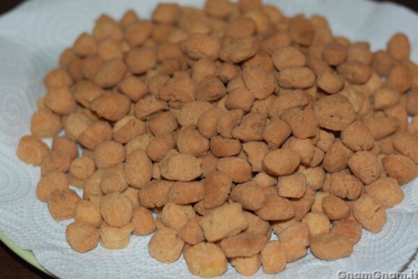 Friggeteli a mano a mano in abbondante olio di semi ben caldo. Non mettete la fiamma altissima, altrimenti si scurranno troppo e subito.